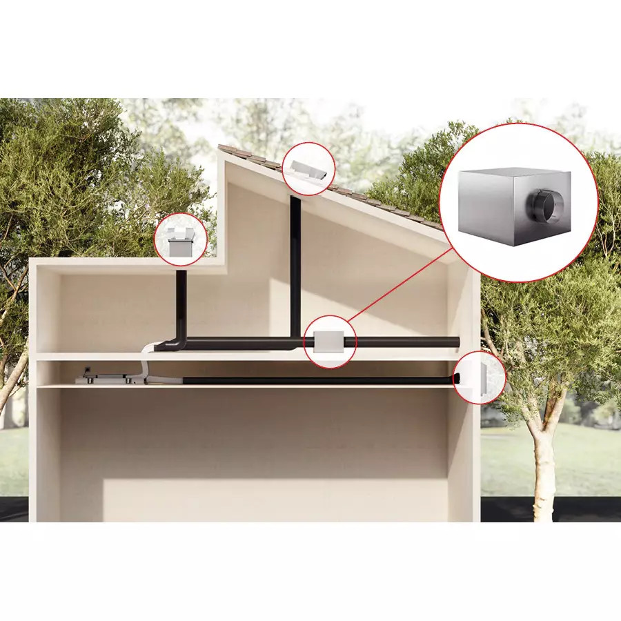 Az Elica GME KIT0184296 motor színterezett acélháza nem csupán elegáns, hanem ellenálló is. Az időtálló anyagok és a precíz gyártási technológia garantálják, hogy a készülék hosszú éveken át megőrizze kiváló állapotát, még padlástérben történő elhelyezés esetén is. Kompakt méreteinek (350 × 350 × 400 mm) köszönhetően könnyen beépíthető szinte bármely megfelelő csőszakaszba, így nem igényel különleges szerelési körülményeket.