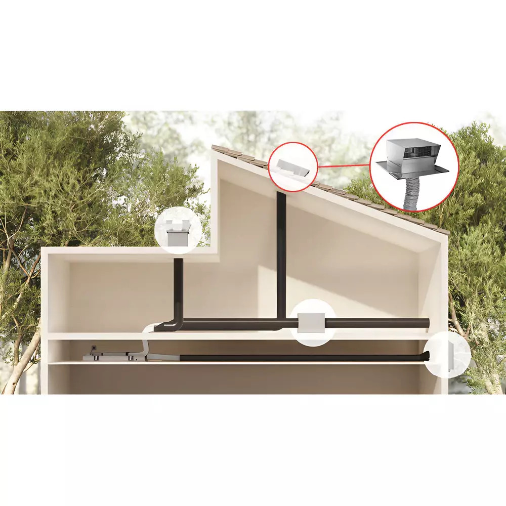 Az elegáns inox kivitel nem csupán esztétikus, hanem rendkívül ellenálló is az időjárási hatásokkal és a korrózióval szemben. A rozsdamentes acél felület hosszú éveken át megőrzi fényét és minőségét, így a készülék nemcsak műszaki, hanem esztétikai szempontból is prémium választás. A gondosan megtervezett csatlakozási rendszer (150 mm csőcsatlakozás) egyszerű és biztonságos telepítést tesz lehetővé, miközben garantálja az optimális légáramlást.