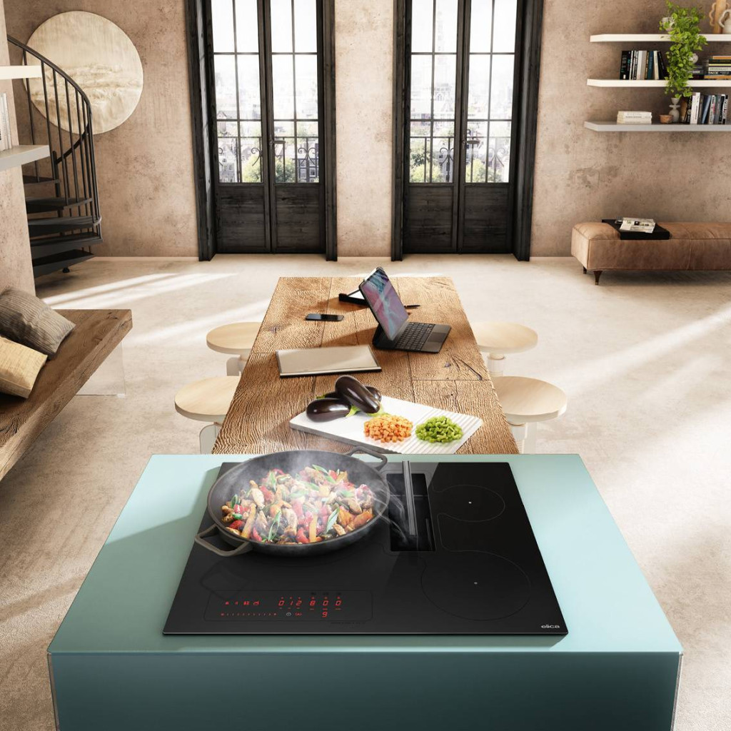 Minőség a mennyiségben. Végre mindenki számára főzhet. A háromzónás elszívós főzőlapon elegendő hely van a nagyméretű serpenyőkkel, fazekakkal és lábasokkal való főzéshez. Az elszívórendszer láthatatlan, csendes, automatikus, és egyetlen érintéssel aktiválható. Zárva a készülék teljes, esztétikailag kivételes hatású linearitással rendelkezik. A fekete üveg és a kifinomult szitanyomás teszi teljessé a design stílusát, amely bármilyen konyhához igazítható. Az érintővezérlés rendkívül egyszerűvé teszi a főzőlap funkcióinak használatát, a rendkívül hatékony elszívó rendszer pedig elnyeli a szagokat és a gőzöket. A hosszú élettartamú szagszűrők könnyen kivehetők, és egy speciális szelepen keresztül a kiömlött folyadékok leereszthetők a teljes higiénia érdekében.