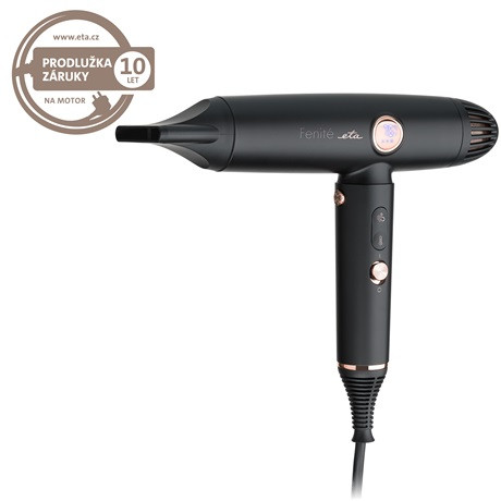 Örömmel száríthatja meg haját az ETA Fenité Exclusive hajszárítóval. A nagy sebességű digitális TURBO BOOSTER kefe nélküli motor akár 110 000 percenkénti fordulatszámmal is elkápráztatja Önt. Így frizuráját pillanatok alatt elkészítheti.