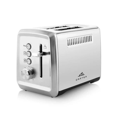 Az ETA Carter kenyérpirító nagyszerű segítőtárs a tökéletesen ropogós pirítósok elkészítéséhez. Rozsdamentes acél kivitelének köszönhetően a konyhapulton is elegánsan mutat. A két rekeszben egyszerre két pirítóst készíthet el, és a hét fokozat közül választva mindig az ízlésének megfelelően sütheti meg őket.