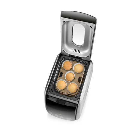 A kezelése egyszerű - a sütőforma lehajtható fogantyúval van ellátva és a tapadásgátló felületkezelésnek köszönhetően nem tapad rá a tészta. Nincs más dolga, mint egyszerűen kimosni, és készen is áll a következő használatra. Az intuitív érintőgombok és az összes állapotinformációt tartalmazó, áttekinthető kijelző segít a beállításokban. Ha azonban inkább saját szemével szeretné meggyőződni a sütés folyamatáról, egyszerűen csak kukkantson be a fedelén lévő üvegablakon.