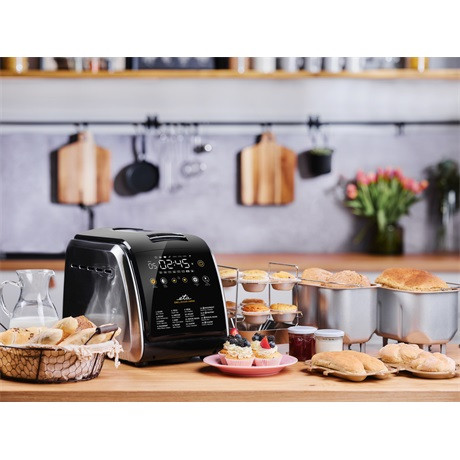 Teljesen automatikus házi kenyérsütő 16 előre beállított programmal, kiflire, bucira és muffinre való formákkal