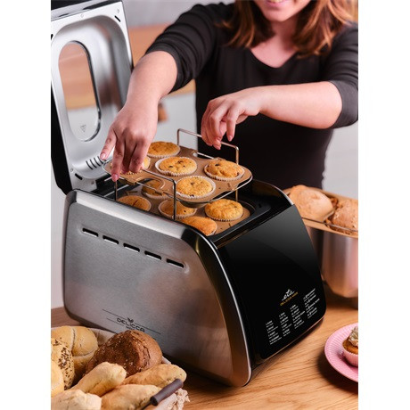 Az ETA Delicca II MAX házi pékség nem csak kenyérrel, hanem egyéb péksüteményekkel is megbirkózik. Élvezze a házi zsemlét, kiflit és muffinokat, és felejtse el a boltban vásárolható alternatívákat. Természetesen mindent elkészíthetsz fehér, teljes kiőrlésű vagy gluténmentes változatban is. A tapadásmentes anyagból készült praktikus sütőformákkal a sütés gördülékenyen megy.
