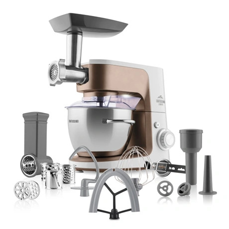 - 54 mm átmérőjű húsdaráló (3 méretű darálólap, kolbászfej, kibé fej, süteménykiszúró, tömörítő, garat)