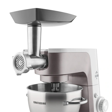 Bár az ETA Gratussino III Elements konyhai robotgép valamivel kisebb, mint nagyobb testvérei, mégsem lomha. Az erőteljes, 1200 W-os motor csendes működéssel és fém fogaskerekekkel hosszú élettartamot és stabil teljesítményt biztosít. A bolygóműves keverőrendszer egyenletesen dolgozza fel az összes hozzávalót a 4,5 literes rozsdamentes acél tálban , amely praktikus fogantyúkkal és átlátszó fedéllel is felszerelt .