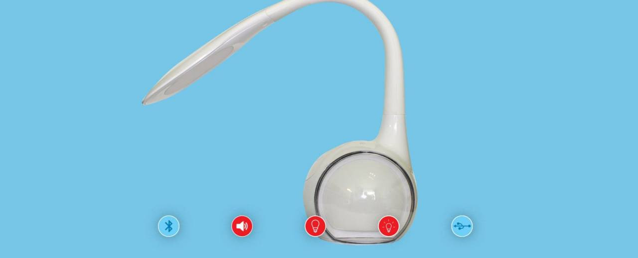 Ez az asztali lámpa a modern formatervezésének köszönhetően, egyaránt beilleszthető az otthoni vagy akár az irodai környezetbe is. Forgatható, hajlítható fejrésznek köszönhetően a kívánt fényt a megvilágítandó területre irányíthatja. A test oldalában található hangulatfényt az érintő kapcsolóval könnyedén szabályozhatja. A zene hallgatás és a telefon kihangosítás mellett az USB aljzat segítségével akár telefonját is töltheti.
