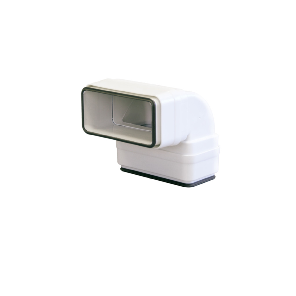 Légtechnikai rendszer kezdő- és végpontja között elhelyezhető 90°-os elem, lapos csatornák derékszögben történő egymáshoz illesztéséhez.