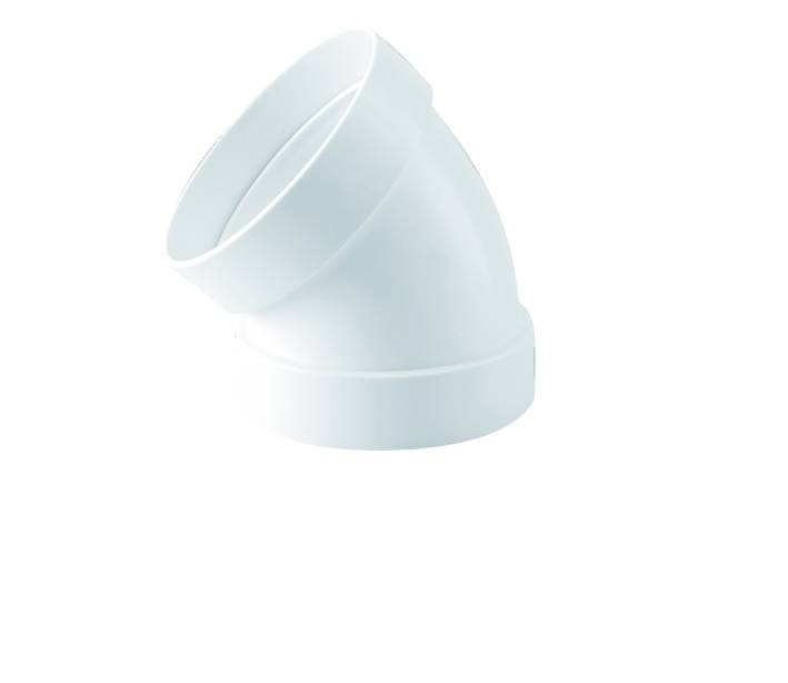 Légtechnikai rendszer kezdő- és végpontja között elhelyezhető 45°-os elem, légtechnikai csövek szögben (gér) történő egymáshoz illesztéséhez.