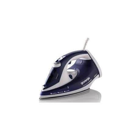 Gőzölős vasaló, Teljesítmény: 2200 W, kerámia talp, vízkőmentesítési funkció, csepegésmentes, függőleges és száraz vasalás, folyamatos gőzkibocsátás 30g/perc, hirtelen gőzlöket 95 g/perc, 0,35 literes tartály, vízpermet funkció, analóg hőmérséklet szabályozás, automatikus kikapcsolás, sötétkék/fehér
