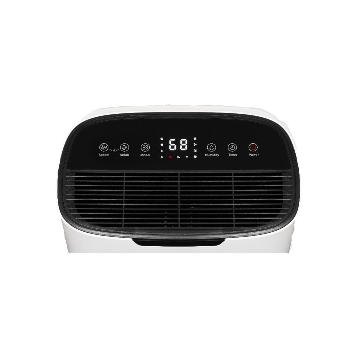 A készülék beépített negatív ion funkcióval is rendelkezik, amely frissíti és megtisztítja a levegőt, elősegítve az egészséges légkört. A gyerekzár megakadályozza a véletlen beállításváltozást, így biztonságosan használható családos háztartásokban is. A 5,5 literes víztartály elegendő hosszabb működéshez, és a telítettség-jelző ikon figyelmeztet, amikor a tartály kiürítése szükséges. Alternatívaként a készülékhez 1,5 méteres vízelvezető cső is tartozik, amellyel folyamatos vízelvezetés biztosítható.