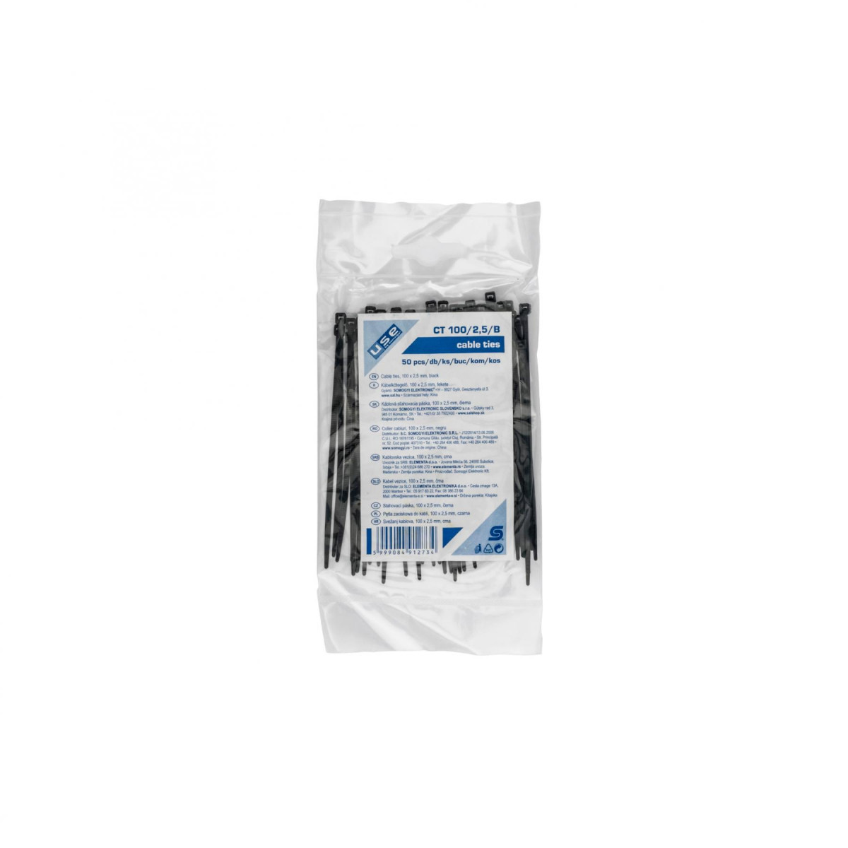 A CT 100/2,5/B fekete színű kábelkötegelő, 100 mm hosszúságban, 2,5 mm szélességben, valamint 50 db/csomagban kapható. Válassza a minőségi termékeket és rendeljen webáruházunkból.