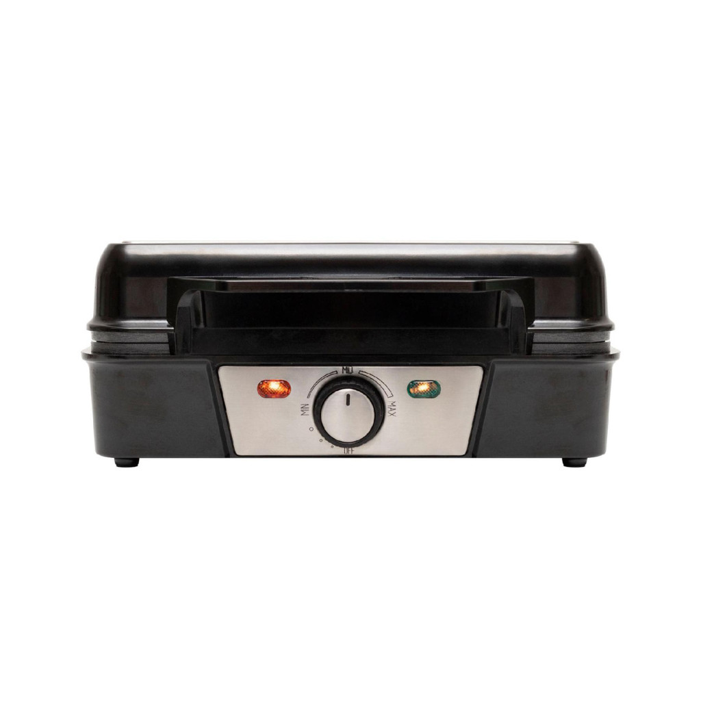 A készülék strapabíró, rozsdamentes burkolattal rendelkezik, amely nemcsak esztétikus megjelenést kölcsönöz, hanem hosszú távú tartósságot is biztosít. A sütésre kész és áram alatt jelzőfények segítenek a könnyű használatban, így mindig pontosan tudni fogja, mikor kezdheti el a sütést.