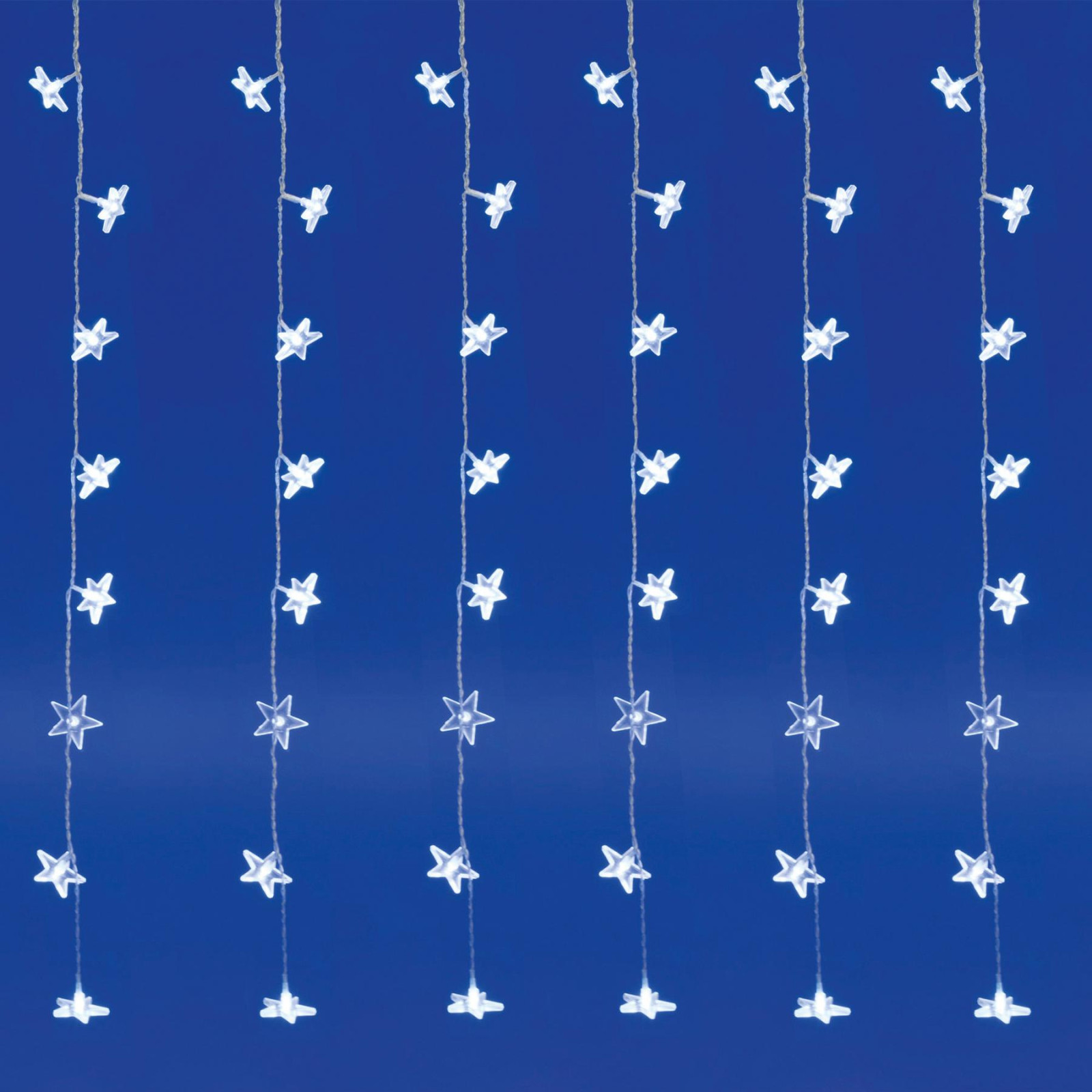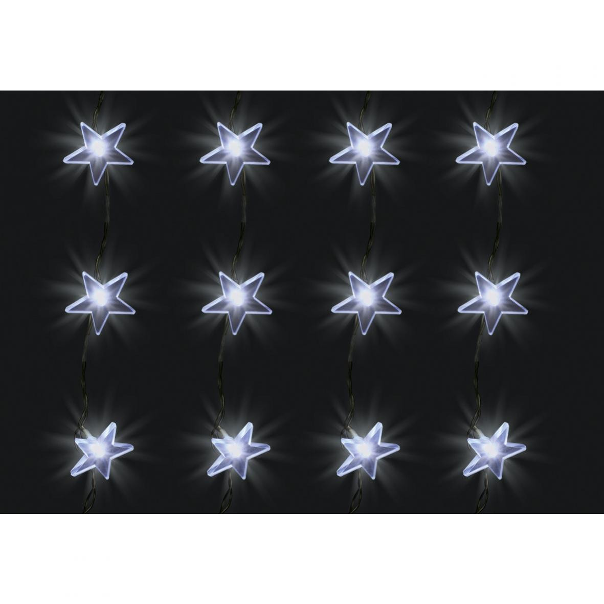 Home KAF 48L LED-es csillag fényfüggöny, 1,5x1 m / 48 db hidegfehér LED csillag figurákban, átlátszó vezeték, hálózati adapter, beltéri kivitel