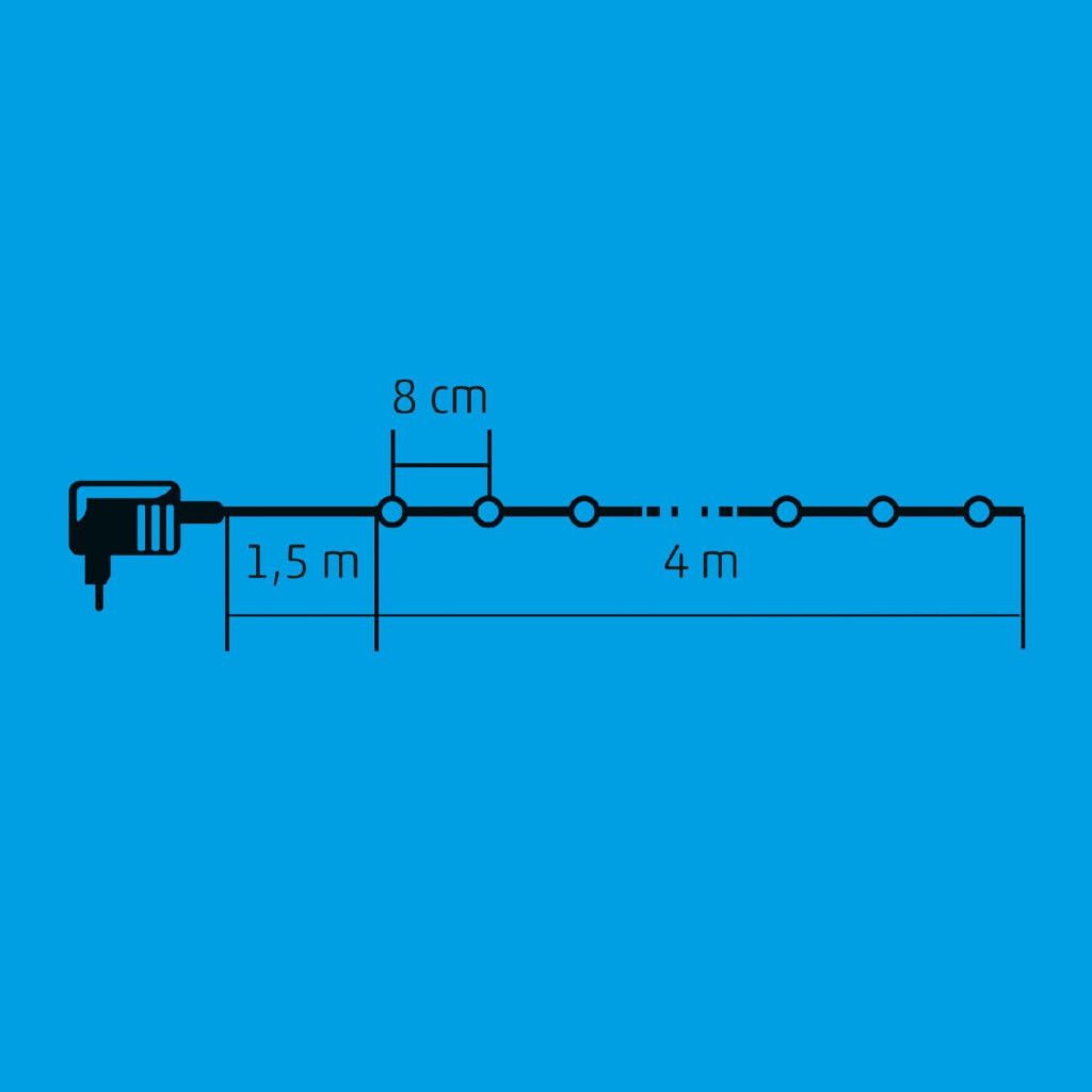 Home KII 50/WH LED-es fényfüzér, 4 m / 50 db hidegfehér LED, állófényű, zöld vezeték, hálózati adapter, beltéri kivitel