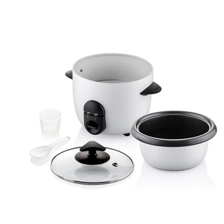 Kompakt rizsfőző 1 literes űrtartalommal 800 g rizshez. Automatikus hőmérséklet-tartás, BE/KI kapcsoló és üvegfedél.