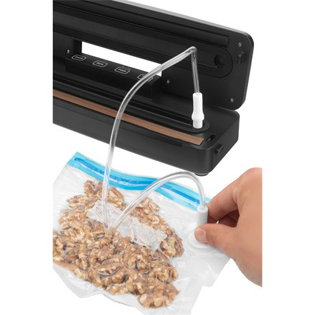 - Teljesen automatikus: szorosan rögzíti a fóliát, felszívja a levegőt