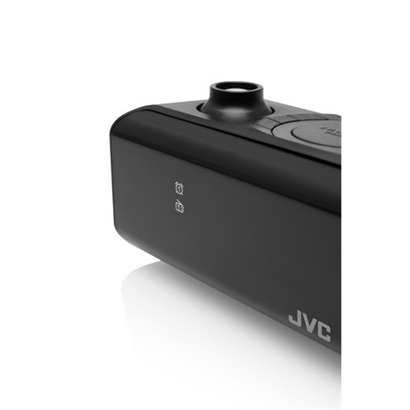 A JVC RA-E211B Rádiós ébresztőóra első ránézésre elegáns dizájnnal és nagy LED kijelzővel érdekes megjelenésű. Az időt mutató számok 22 mm magasak. A kijelző fényerejét a Dimmer funkció segítségével lehet beállítani. Nagyon praktikus funkció a falra való idő kivétítése is, 180° fokos forgatási lehetőséggel.