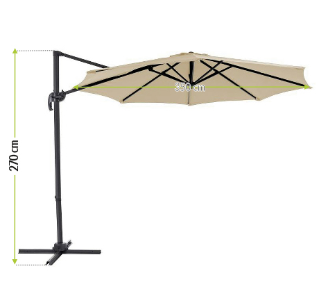 | Magasság | 270 cm | Ernyő anyag | poliészter 250 g / m2 |
