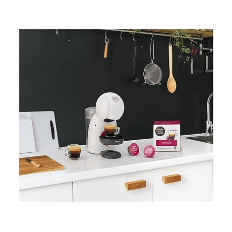 A NESCAFÉ® Dolce Gusto® Piccolo XS extra kompakt kapszulás kávéfőzőt úgy tervezték, hogy modern formájával és méretével illeszkedjen minden konyhához. A kávéfőző professzionális nyomásának köszönhetően (akár15 bar) barista minőségű kávét készíthet sűrű bársonyos habbal. Hermetikusan zárt kapszulákkal, amelyek frissen tartják a kávét, élvezni fogja a csésze kávéjának gazdag aromáját, amikor csak akarja. Egyszerűen helyezze be a kapszulát, és a kézi kar egyetlen mozdulatával válassza ki a forró vagy hideg vizet, és akár 30 italból el egy pillanat alatt késztse el az ízlésének megfelelőt - az eszpresszótól a lungón, a cappuccinon, a latte macchiaton keresztül, csokoládés és hideg italokig.