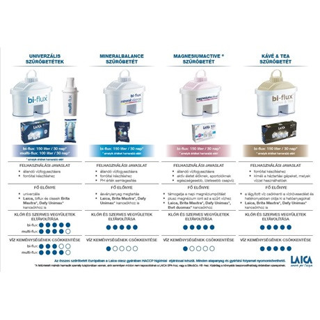 - jellemzően az összes LAICA vízszűrő kancsó ezzel az univerzális szűrőbetét formulával kerül forgalomba