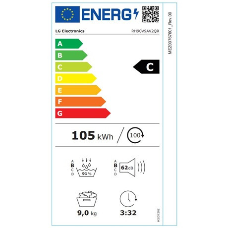 Lg SZÁRÍTÓGÉP HŐSZIVATTYÚS RH90V9AV2QR