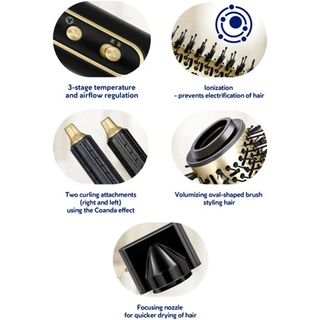 • 3 az 1-ben szárítási és formázási funkció (göndörítés, szárítás, kefélés/térfogatnövelés)