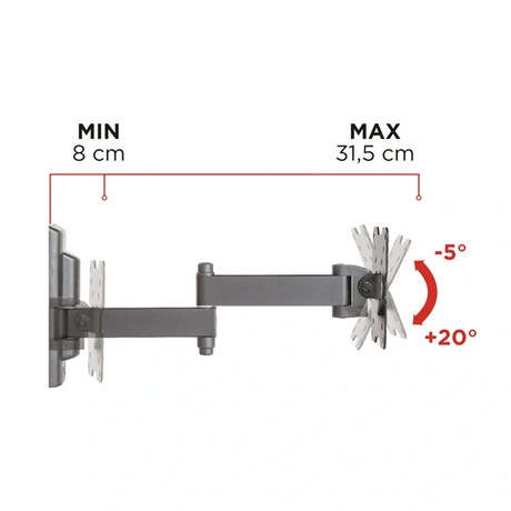 Az FDR100 egy dönthető forgatható dupla karos TV fali konzol VESA 50-75-100 mm-es felfogatási lehetőségekkel, amely lehetővé teszi a képernyő függőleges és vízszintes megdöntését.