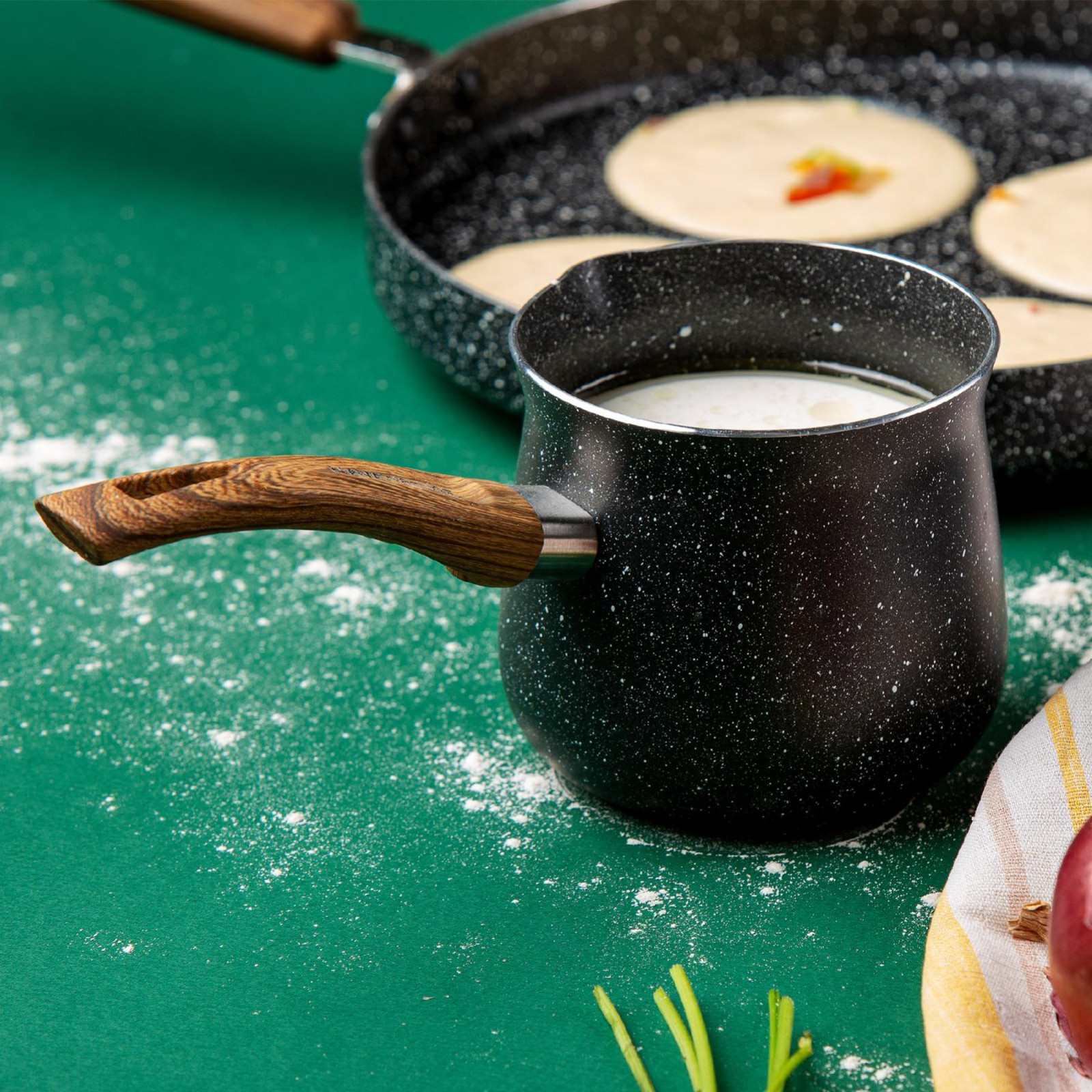 Ez a 0,6 literes kávékiöntő prémium minőségű alumíniumból készült, amelyet ötrétegű, tapadásmentes kőbevonat borít, biztosítva ezzel a hosszú távú használatot és a magas hőmérsékletekkel szembeni ellenállást. A gyártás során környezetbarát módszerekre és PFOA-mentes anyagokra helyeztünk hangsúlyt, így Ön nyugodt lehet afelől, hogy a termék kíméli környezetünket.