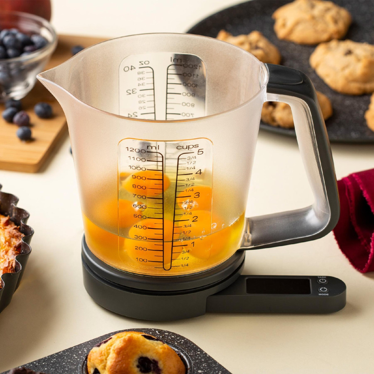 Az intuitív LED kijelző és a kancsó oldalán található mérőskálával - amely ml, oz és csésze egységeket is megjelenít - minden hozzávalót a legnagyobb precizitással mérhet le.