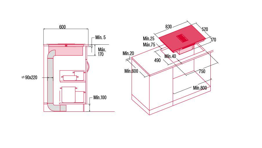 A Nodor FLOW-IN különlegessége, hogy az elszívó közvetlenül a főzőfelületbe integrált. A brushless motorral szerelt rendszer maximális 800 m³/h légszállítást biztosít, miközben a zajszint 50–74 dB(A) között marad. A kerámia méhsejtes szűrők kivehetők és regenerálhatók, így a karbantartás egyszerű és költséghatékony. Az A+ energiaosztály pedig garantálja, hogy a készülék hosszú távon is takarékosan működjön.