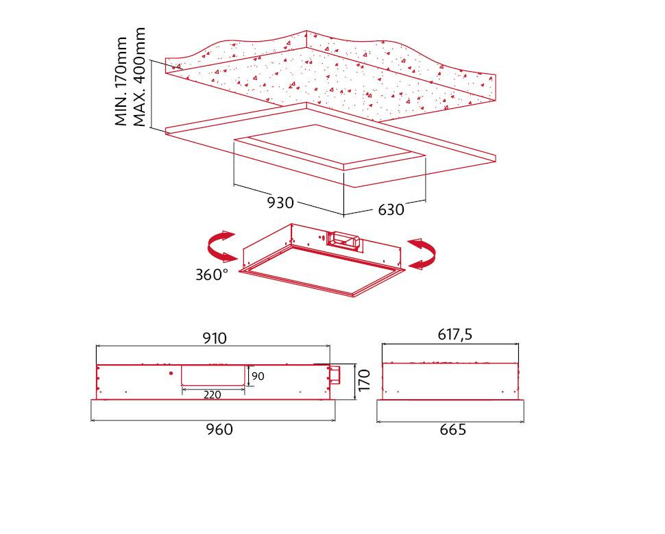 Ennél a speciális műszaki megoldásnál az elszívás egy ún. zajcsökkentő panel pereme mentén történik, mintegy légfüggönyt képezve a főzőfelület fölött, ezáltal a légsebesség megnő és hatékony légszállítást tesz lehetővé.