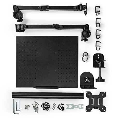 Ez a Nedis teljes mozgású monitor asztali rögzítőkar alkalmas egy lapos képernyőhöz, legfeljebb 32"-ig és notebookokhoz akár 17"-ig. A sokoldalú döntési (50°), forgatási (360°) és elforgatási (180°) lehetőségek lehetővé teszik, hogy a tartót bármilyen látószögre váltsa. Ez a tartó nagyszerű választás az íróasztalokon való helytakarékos elhelyezéshez egy asztali bilincs segítségével, hogy könnyen és gyorsan felszerelhető legyen.