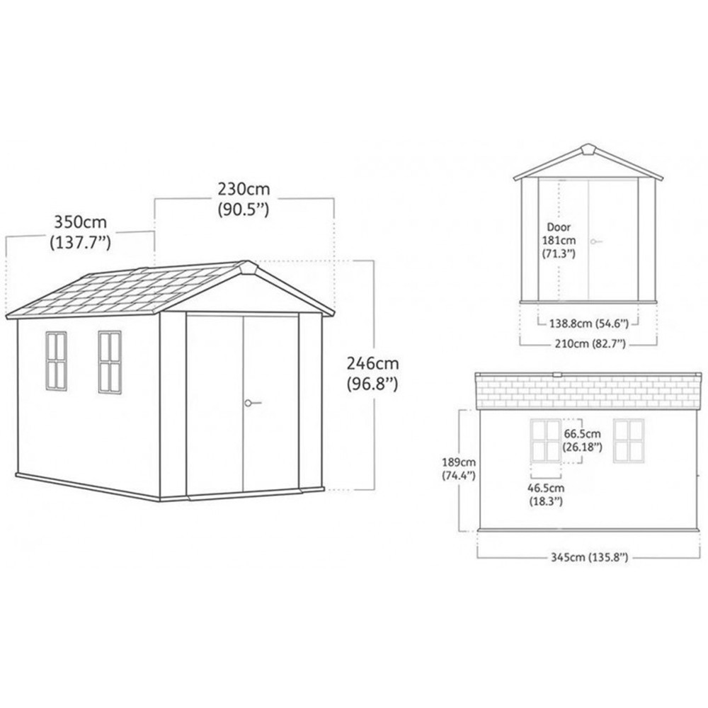 A Newton Plus 11 x 7,5 kerti ház tökéletes megoldás, ha biztonságos, rendezett és tartós tárolóhelyre van szükség. Külső méretei: 230 cm (szélesség) x 350 cm (hosszúság) x 246 cm (magasság). A tágas belső tér elegendő helyet biztosít a kerti és műhelyeszközöknek, sportfelszereléseknek és grillkellékeknek. Az EvoTech anyagnak köszönhetően időjárásálló és karbantartásmentes, így nem kell aggódnod a festés vagy impregnálás miatt.