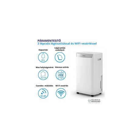 Igazi komplett levegőkezelő készülék: nagy teljesítményű páramentesítő beépített háromszintű légtisztítással és Wifi alapú távoli vezérlési lehetőséggel!