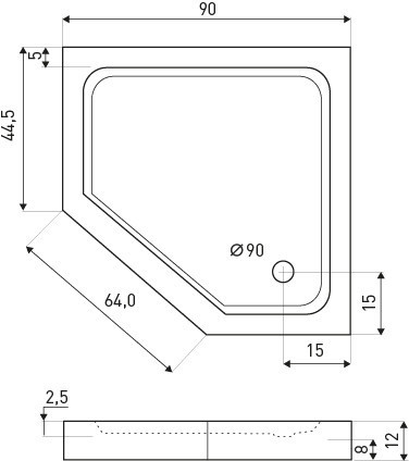 Prato 90 szögletes fekete akril zuhanytálca