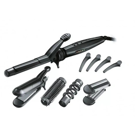 - Tartozékok: Kúpvas, Kefés formázófej, Vékony sütővas, Fésűs formázóvég, Spirális formázófej, Cserélhető kreppelő és hajkisimító tartozék, Hajcsat, Tároló táska