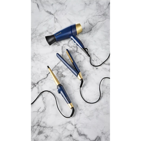 A Remington Sapphire Luxe göndörítő kúpvassal olyan fürtöket készíthetsz, amilyeneket csak szeretnél. Elegáns mélykék kivitele és pezsgő arany díszítőelemei biztosan stílusosan mutatnak majd, bárhol is készülődsz. A kúpvas segítségével lágy, laza hullámokat, határozottabb fürtöket vagy a kettő kombinációját érheted el. A valódi zafírral bevont, fejlett kerámia bevonat segít kisimítani a hajszálak felületét, így elősegíti a ragyogást. A Sapphire Luxe göndörítő kúpvas olyan praktikus funkciókkal rendelkezik, mint a változtatható hőmérséklet, amely minden hajtípushoz alkalmassá teszi, valamint a kényelmes kezelés érdekében hűvös vég.