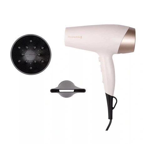 A nagyszerű haj gyönyörű, ápolt megjelenéssel és természetesen puha tapintással kezdődik. A Remington Shea Soft hajszárító shea olajjal dúsított mikrokondicionáló anyagokat tartalmaz, amelyek a légáramba jutnak, hogy a haj kellemesen puha és sima legyen. Az ionos technológia csökkenti a statikus feltöltődést, hogy megszüntesse a gubancolódást a szállóhaj-mentes végeredmény érdekében. A diffúzor tartozék fokozza a haj természetes göndörségét, míg a széles szárító szűkítőfej a légáramlást irányítja, és növeli a levegő sebességét a gyors szárítási eredmény érdekében.