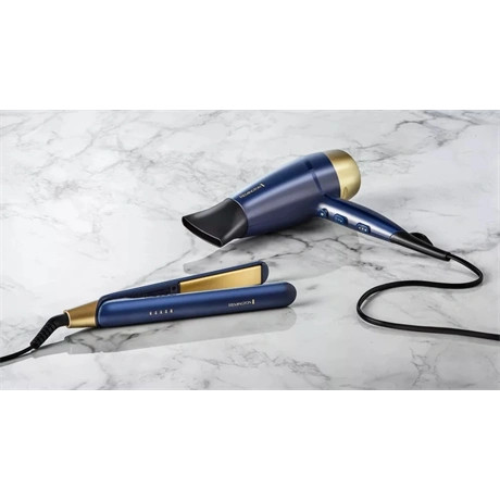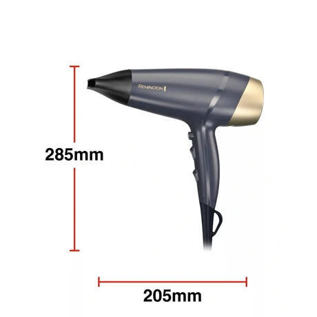 Szeretnéd, ha a hajad úgy csillogna, mint a drágakövek? Bár csodát nem ígérhetünk, azt megígérhetjük, hogy a zafírral dúsított, fejlett kerámia bevonatú hűtőráccsal ellátott Remington Sapphire Luxe hajszárító gyönyörű, sima végeredményt biztosít. Az ionos kondicionáló segít csökkenteni a statikus feszültséget, így a hajad kevésbé száll, és fényes lesz. Erőteljes, gyorsan szárító 2200 W-os motorja három hő- és két sebességfokozattal rendelkezik, így a hajszárításhoz kiválaszthatod a hajtípusodnak megfelelő hőmérsékletet és teljesítményszintet. Az elegáns mélykék és pezsgőszínű színvilággal tervezett Remington Sapphire Luxe hajszárító elképesztően jól mutat bármelyik fésülködőasztalon.