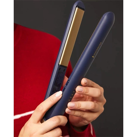 A Remington Sapphire Luxe hajsimítóval egy csipetnyi luxust vihetsz hajformázási rutinodba. A pezsgőszínű elemekkel díszített, elegáns mélykék kivitelű hajsimító zafírral dúsított, fejlett kerámia bevonatú simítólapokkal rendelkezik, amelyek 2-szer simábbá* teszik a hajat a gyönyörű végeredményért. Az öt praktikus beállítással rendelkező digitális hőmérséklet-szabályozó lehetővé teszi a hajtípusnak megfelelő hőmérséklet kiválasztását. A hajformázás során az ívelt burkolat megkönnyíti a loknik és hullámok, valamint az egyenes fazonok kialakítását, míg a rugalmas simítólapok egyenletes nyomást fejtenek ki a hajra, így a hajtövektől a hajvégekig tökéletes eredményt érhetsz el.