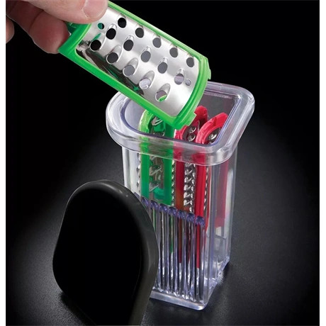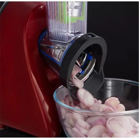 Az aprító és szeletelő tárcsákból közvetlenül a tálba vágja fel az alapanyagokat így könnyű tisztán tartani.