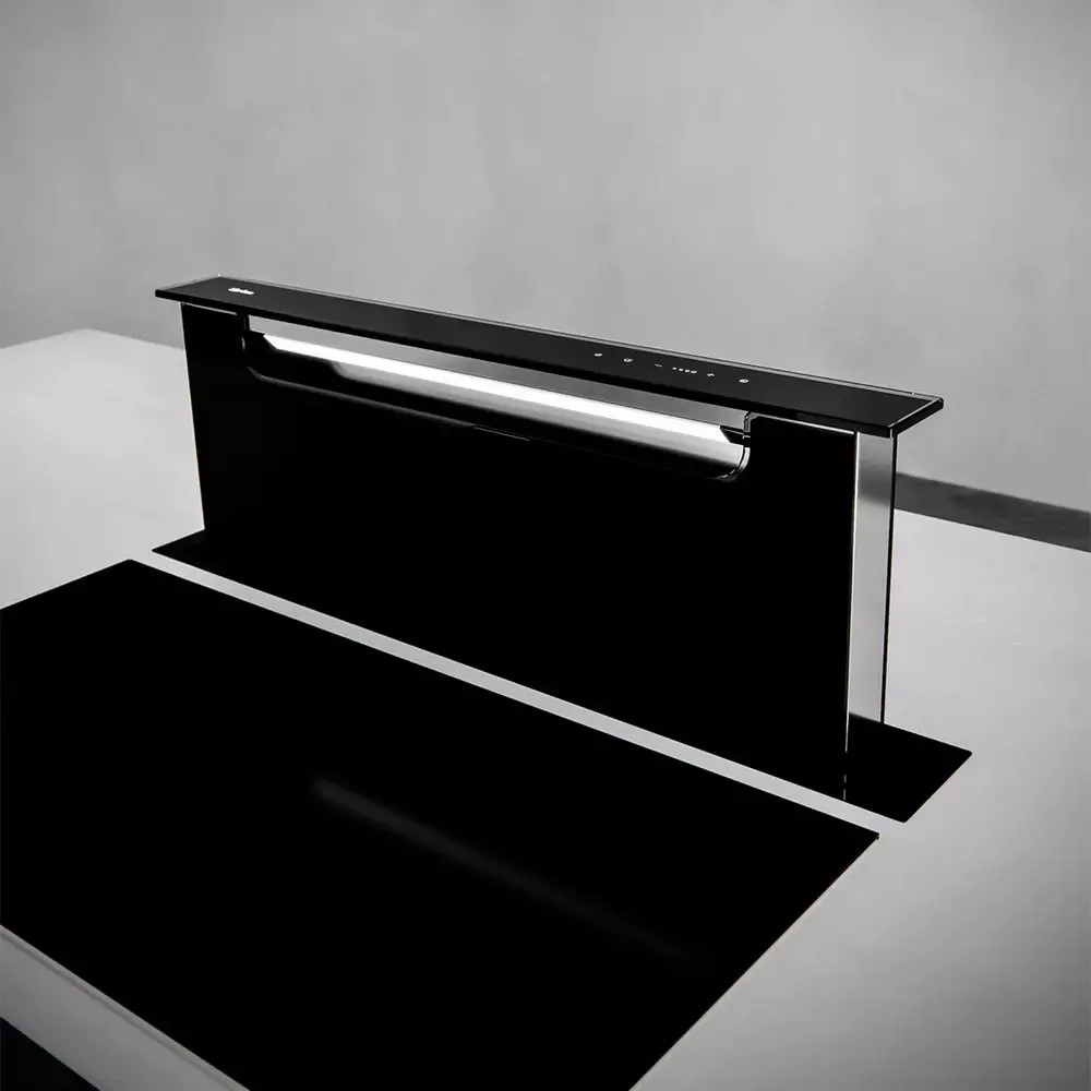 A Sirius S-DD18 BALANCE EM fekete pultba építhatő páraelszívó a modern konyhák egyik legstílusosabb kiegészítője. Fekete üveg előlapja és rozsdamentes acél szerkezete időtlen eleganciát sugároz, miközben pultba építhető kialakítása diszkréten simul bele a környezetbe. Bekapcsoláskor motoros mechanikával finoman kiemelkedik a munkalapból, látványos fókuszt teremtve a konyhában, majd a főzés végén ugyanazzal az elegáns mozdulattal visszasüllyed. Ez a megoldás nemcsak praktikus, hanem esztétikai szempontból is kiemelkedő: a konyha tiszta, rendezett látványát őrzi meg.