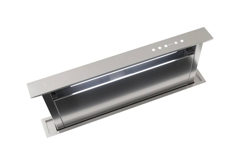 A Sirius S-DD2/L EM 118 LED Inox páraelszívó a letisztult formatervezés és a prémium anyaghasználat tökéletes ötvözete. A gép teste rozsdamentes acélból készült, így nemcsak esztétikus, hanem rendkívül tartós és higiénikus is. Pultba építhető kialakítása révén diszkréten simul bele a konyha környezetébe, majd egyetlen érintésre motoros mechanikával finoman kiemelkedik a munkalapból. A főzés végeztével elegánsan visszasüllyed a pultba, megőrizve a konyha rendezett, modern látványát.