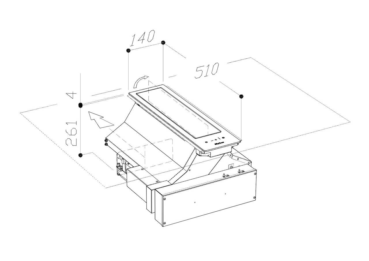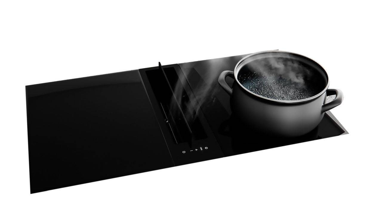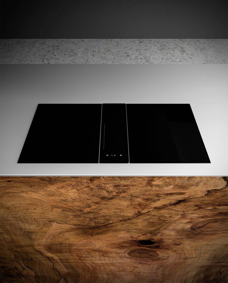 A fekete üveg előlapon elhelyezett érintővezérlés egyszerű, megbízható használatot kínál: egy finom érintésre a középső panel motoros mechanikával 90°-ban felemelkedik a pultból, aktiválva a nagy hatékonyságú elszívást. A 3 fokozat és a turbó üzemmód precízen igazítható a főzés intenzitásához; nagy terhelésnél azonnali reakciót és gyors levegőtisztítást biztosít. A főzés végeztével az elszívó visszasüllyed a munkapultba, megőrizve az egységes, elegáns megjelenést és csökkentve a porosodó felületek számát.