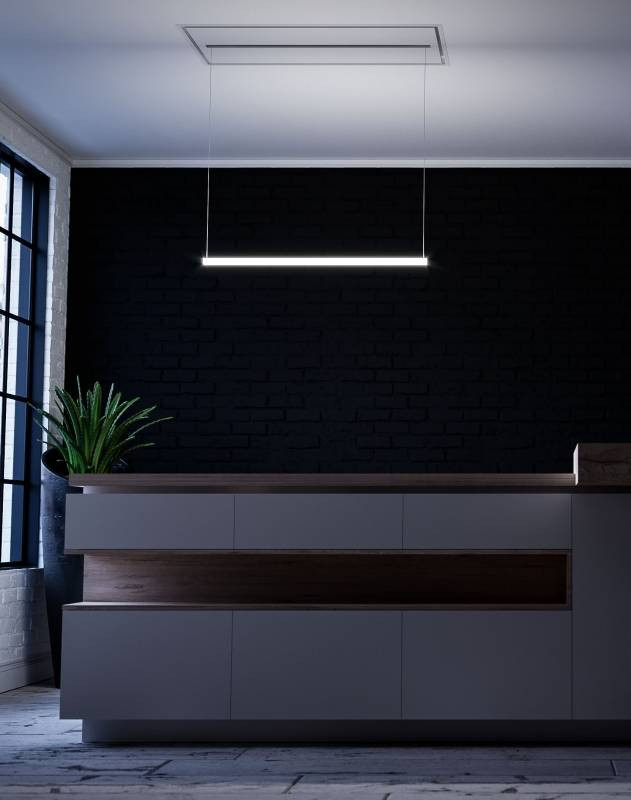 A Line (SLT-977) mennyezeti páraelszívó egyszerű világítási vonalak és egy elszívó rendszer kombinációjából született, teljesen integrálva a mennyezetbe. A nagy hatásfokú polikarbonát diffúzor egyenletes fényeloszlást és magas vizuális élményt nyújt. Beállíthatja az intenzitást és a színhőmérsékletet melegtől a hidegig, hogy a világítást a háztartási környezethez igazítsa. A páraelszívót távvezérlővel, Sirius App-al, mobileszközökkel, tablettel és hangasszisztensekkel (Alexa és Google Home) is vezérelheti.