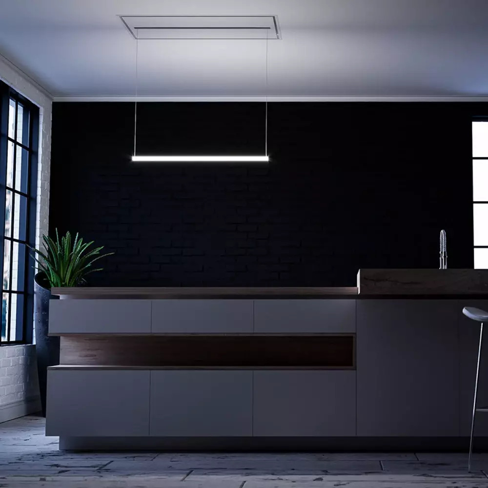 A Line (SLT-977) mennyezeti páraelszívó egyszerű világítási vonalak és egy elszívó rendszer kombinációjából született, teljesen integrálva a mennyezetbe. A nagy hatásfokú polikarbonát diffúzor egyenletes fényeloszlást és magas vizuális élményt nyújt. Beállíthatja az intenzitást és a színhőmérsékletet melegtől a hidegig, hogy a világítást a háztartási környezethez igazítsa. A páraelszívót távvezérlővel, Sirius App-al, mobileszközökkel, tablettel és hangasszisztensekkel (Alexa és Google Home) is vezérelheti.