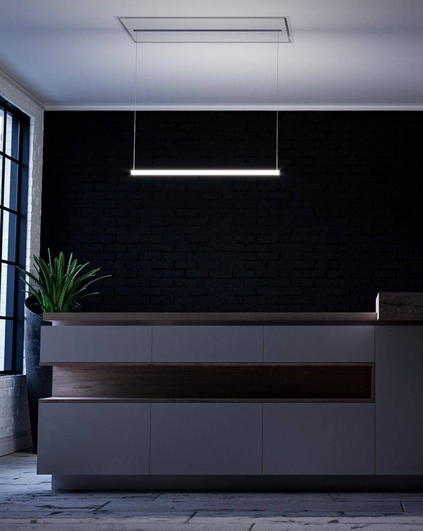 A Line (SLT-977) mennyezeti páraelszívó egyszerű világítási vonalak és egy elszívó rendszer kombinációjából született, teljesen integrálva a mennyezetbe. A nagy hatásfokú polikarbonát diffúzor egyenletes fényeloszlást és magas vizuális élményt nyújt. Beállíthatja az intenzitást és a színhőmérsékletet melegtől a hidegig, hogy a világítást a háztartási környezethez igazítsa. A páraelszívót távvezérlővel, Sirius App-al, mobileszközökkel, tablettel és hangasszisztensekkel (Alexa és Google Home) is vezérelheti.