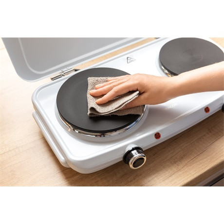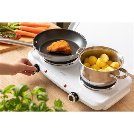 A Sencor SCP 2271WH-EUE4 egy két főzőzónás elektromos főzőlap ideális választás lehet nyaralóba, kollégiumba. A kompakt kialakításának köszönhetően nem igényel nagy helyet és beüzemelése is könnyen, egyszerűen elvégezhető. A tűzhely egy 18 cm és egy 15 cm átmérőjű főzőfelülettel, 2500 W teljesítménnyel és folyamatosan szabályozható termosztáttal lett felszerelve. A használatát egy működést jelző lámpák könnyíti meg. A kiváló stabilitást a csúszásgátlóval ellátott lábak biztosítják.