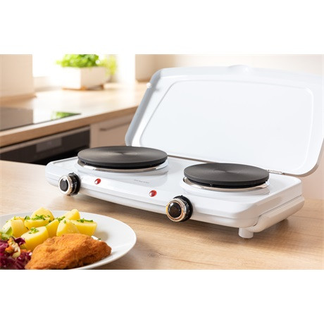 Két 18 és 15 cm átmérőjű főzőlap áll a rendelkezésére, így kisebb-nagyobb edényeket, serpenyőket is elhelyezhet rajta. A főételt és a köretet is elkészítheti egyszerre. Minden főzőlap külön forgó kapcsolós gombbal vezérelhető, valamint folyamatos hőmérséklet-szabályozással és egy fényjelzővel.